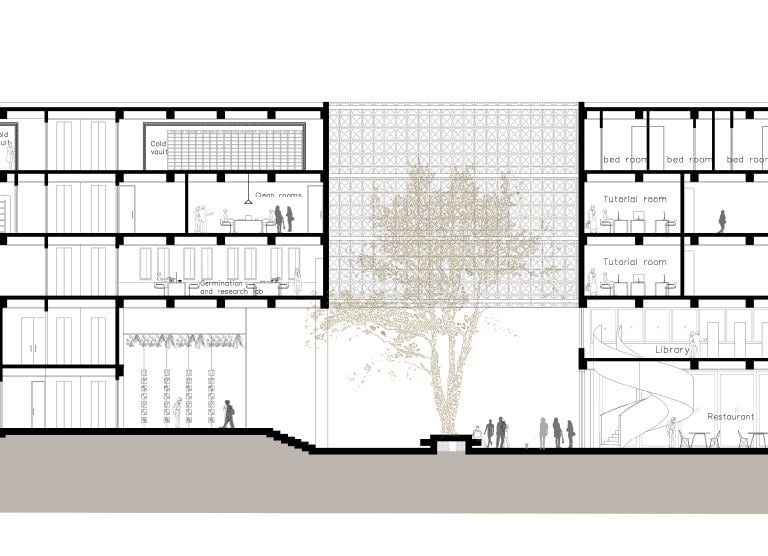This proposed seed bank in Duffy, Canberra, is designed as a resilient space to safeguard native plant propagation and biodiversity in the event of bushfires, which have significantly impacted the area. By combining seed conservation, horticultural research, and public education, the facility aims to protect Australia’s native plant diversity, which is increasingly threatened, with over 6% of species nationally listed as at risk. The building incorporates innovative seed-banking methods to preserve genetic diversity, ensuring a supply of pest-resistant and drought-tolerant crops vital for biosecurity and sustainable agriculture. It also promotes bush tucker planting, urban food production, and community engagement through interactive green spaces, outdoor classrooms, and pathways for visitors.